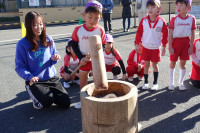 毎年この時期恒例の「おもちつき」が今年もとても楽しく行われました。子ども達がつく場所は例年広い園...