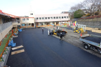 2週間前から始まった園庭人工芝敷設工事では、大量の土を取り、大規模な排水設備を設置しその後整地し、...