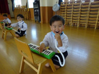 年少のお友達は、初めての音楽指導にとても楽しく取り組むことができました