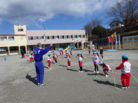 日中は寒さが緩み、良い天気のなか「豆まき」が行われました。今回は密を避けるために、学年ごとに距離...