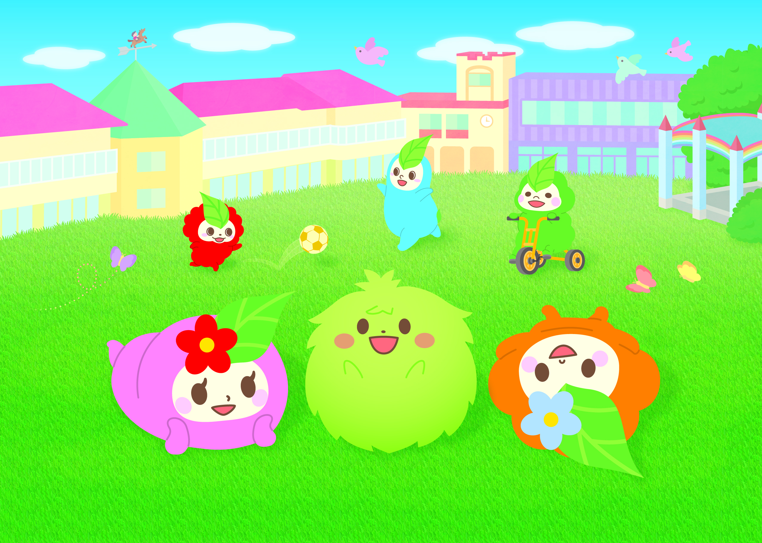 緑ケ丘幼稚園新キャラクター「ターフくん」です(手前中央)。ぜひ仲良くなって下さい。