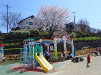 春休みファミリークラスでは、満開の桜のもと元気に遊んでいます