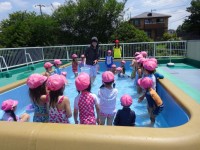 本日も朝から梅雨の晴れ間の良い天気となり、年中さんも急きょプールに入りました。子ども達はプールに...