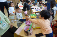 今週はひよこ教室において「お店屋さんごっこ」を行っていますが、昨日はいちご組(2歳児毎日登園)のお友...