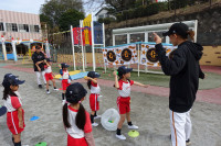 ジャイアンツの野球体験が楽しく行われました(年長)