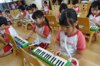 年中さんは音楽指導に楽しく参加しました